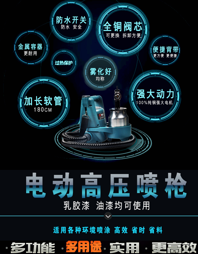 恒动高压电动喷枪油漆乳胶漆喷涂机涂料喷枪家具汽车喷漆枪高雾化