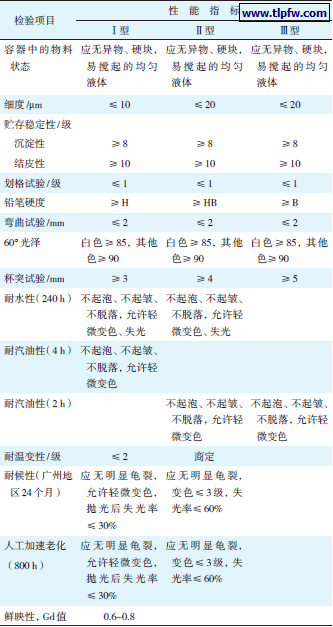 表1 GB/T 13492—92 规定的Ⅰ、Ⅱ、Ⅲ 3 种类型汽车面漆的技术要求