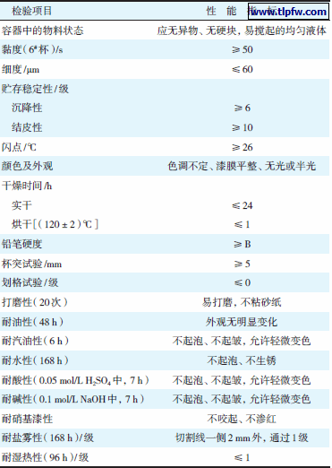 表2 GB/T 13493—92 规定的汽车用底漆的技术要求