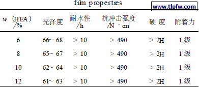 2. 2. 2 乳液聚合物中羟基单体的用量对涂膜性能的影响