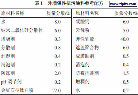 外墙弹性抗污涂料参考配方见表1。