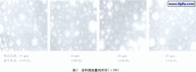 在光学显微镜下涂料用微胶囊的外形见图2。