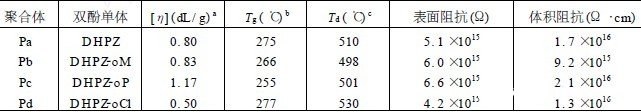 a :在25 ℃,0. 5dL/ g 以上的标准氯原子;b : Tg 被DSC 在20 ℃/ min 热处理下记录;c :10 %热失重Td 被TGA 在20 ℃/ min 热处理下记录。