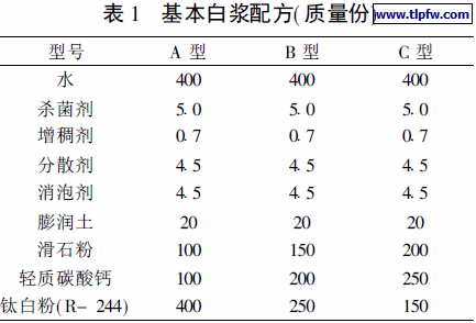 我们采用了三个比较成熟的白浆配方( 见表1) 。