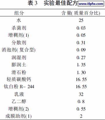 根据基础实验和性能测试数据, 结合市场的需要, 我们提出最佳配方如表3。