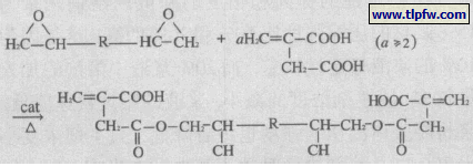 环氧树脂和衣康酸在催化剂存在下进行酯化反应,由于单体配比的不同,会发生不同的反应: