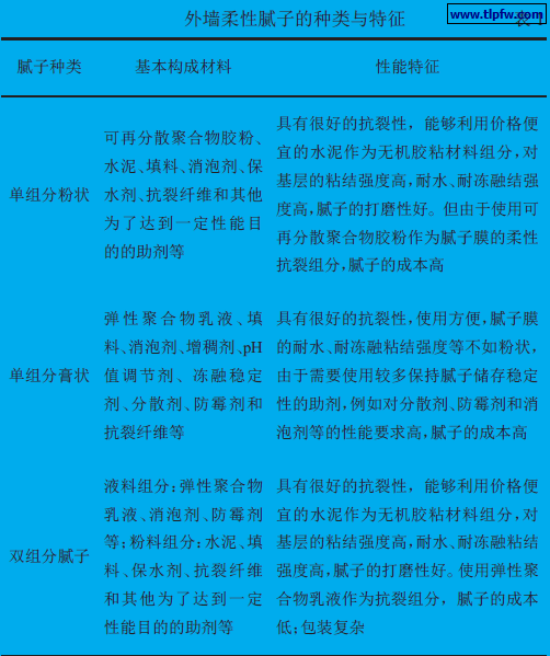 1.2 外墙柔性腻子的种类