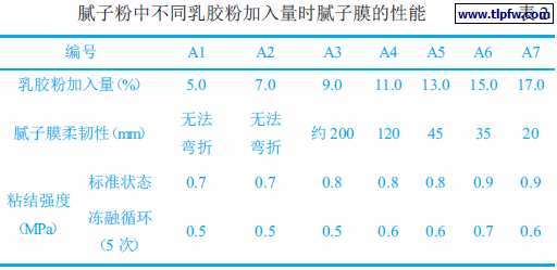 3.1 粉状腻子中乳胶粉加入量对腻子膜柔韧性的影响