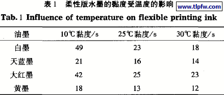 1)温度。水墨的黏度受温度的影响见表1,温度越高,水墨黏度越低,反之,温度越低,水墨的黏度越高。