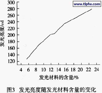 20.0%为宜。发光亮度随发光材料在涂料中的含量的亦让见.图3。