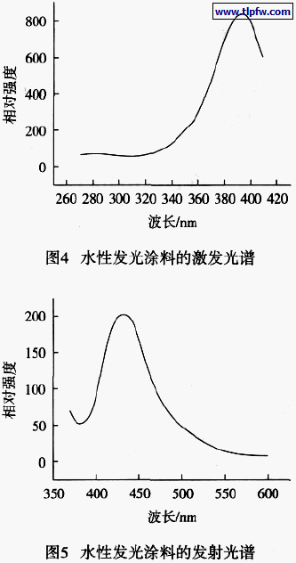 以300nm,的紫外线激发样品,在300 — 650nm范围内每隔5s记录一次样品的相对发光强度。图4表明激发谱位于320 -420之间的较宽谱,说明可见光和紫外光部分均对发光材料有有效地激发。因此,SrAI204: Eu2+ , Dy3+水性内墙发光涂料在自然光照射后,可发出明亮的黄绿光。