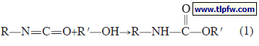 水性双组分聚氨酯涂料体系主反应为多元醇与异氰酸酯反应形成以氨基甲酸酯键为交联点的网络结构,该反应是水性聚氨酯最主要的化学反应。化学反应式如式(1)。