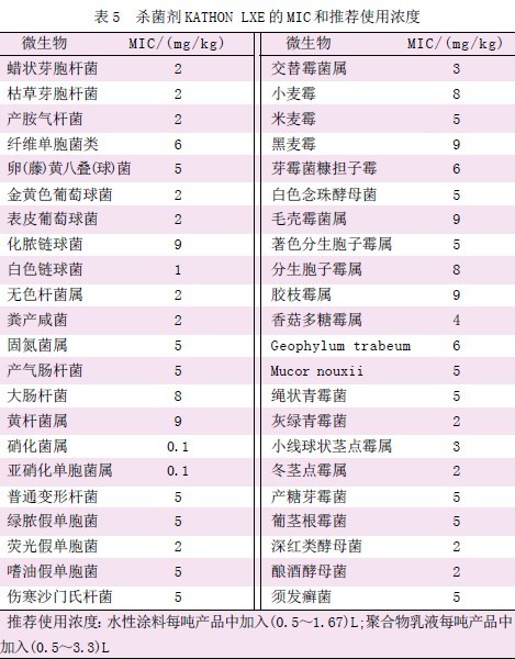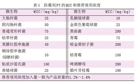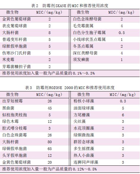2.3 防霉杀菌剂的使用浓度