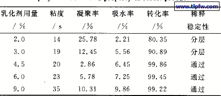 表1 乳化剂用量对乳液的影响