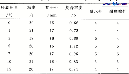 由于本文主要是通过环氧改,性丙烯酸酯来改进纯丙烯酸酯乳液的附着力,因此讨论了不同环氧用量下制得的乳液对油墨性能的影响,见表3。