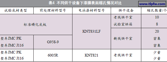 采用不同的烘干设备进行电泳涂装试验,漆膜表面缩孔情况见表4。