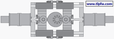 (3) 凸轮形电动泵:是双凸轮水平对置泵,驱动机构的示意图如图1 所示;采用2 缸4 球或4 缸8 球结构,其流体吸压部件如图2 所示。可配备不同的驱动电机来达到不同的材料输送流量。