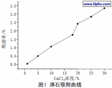 2.1 沸石对氯化钙的吸附量及吸放湿性能