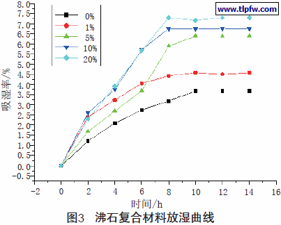 2.2 沸石复合调湿涂料吸湿、放湿性能