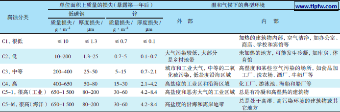表1 ISO 12944—2—1998 典型的腐蚀环境分类
