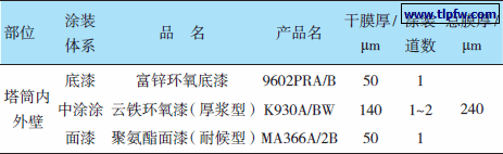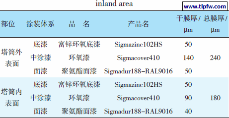 表3 Sigmakalon 对内陆地区设计的风机塔筒涂装体系