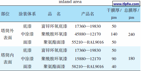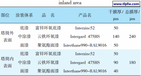 (1) 与内陆风机塔筒涂装体系相同,但总膜厚增加。