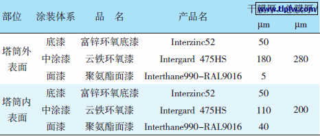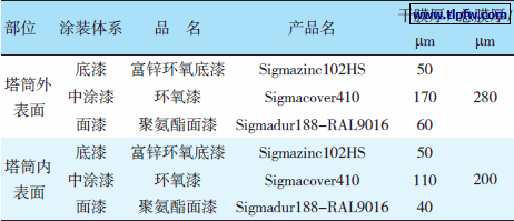 表7 Sigmakalon 对沿海湿热、含盐分气候条件下设计的风机塔筒涂装体系