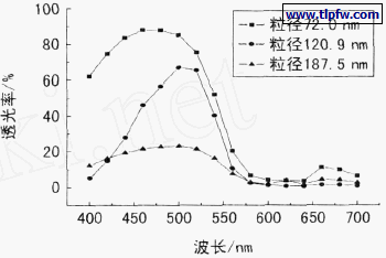 图2是涂料粒径与涂料色浆透光率的关系。
