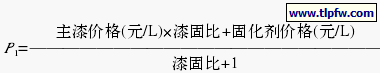 例:V(主漆)∶V (固化剂)=5∶2时,计算公式中的体积漆固比数值则为2.5。