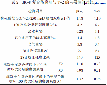 (1)通过大量试验研究,制备了一种新型多功能混凝土外加剂———JK-8 复合防腐剂,其各项技术指标良好。