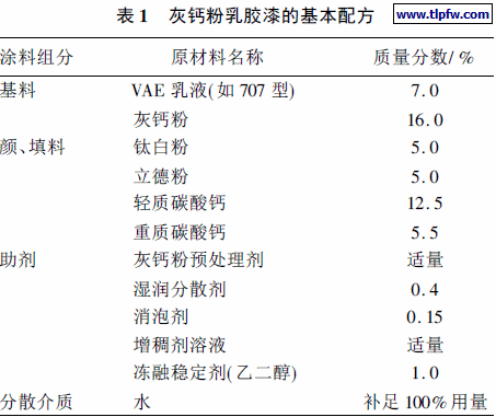 灰钙粉属于气硬性胶凝材料, 在涂膜中起到无机基料的作用和增强聚合物树脂性能的作用, 并节省乳液用量; 灰钙粉能够提高涂料的遮盖力, 降低涂料中钛白粉或立德粉等颜料的用量。乳胶漆的原材料成本不到1 750 元/ t, 且能够达到GB/T 9756 – 2001 优等品的标准。