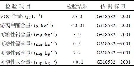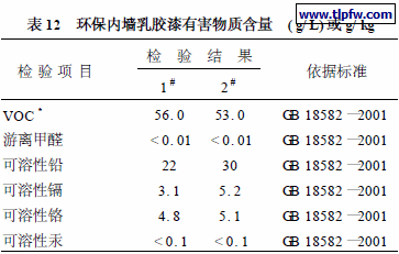 环保型内墙乳胶漆有害物质含量检测结果见表12 。