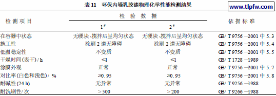 环保内墙乳胶漆理化性能检测结果见表11 。