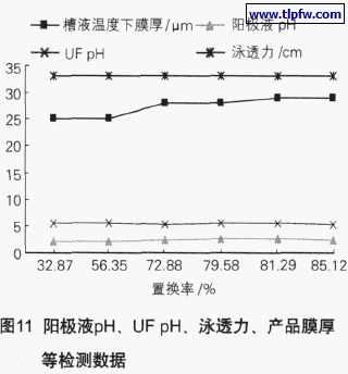 置换过程的各项检测结果表明,电泳漆从ED5升级换代到ED6可以顺利进行,工艺参数均在可控范围内,漆膜各项指标符合产品质量要求,未出现严重的质量波动情况。