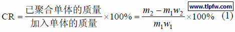 图4 是共聚单体用量对接枝体系的CR、GR 和GE的影响(聚合条件同前)。共聚单体的用量是指共聚单体在反应物中所占的质量分数。由图4 可见,随着共聚单体用量的增加,CR 均为100%,GR 和GE 则逐渐提高。