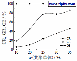 图4 共聚单体用量对CR、GR 和GE 的影响