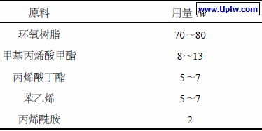 环氧树脂CYD – 014U,二甲苯、乙二醇单丁醚、甲基丙烯酸甲酯、丙烯酸丁酯、苯乙烯、甲基丙烯酰胺、过氧化苯甲酰(BPO) 、偶氮二异丁腈(A IBN) 、二乙醇胺、乳酸等,以上试剂均为分析纯。