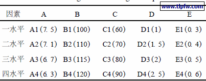 表2 正交因子水平表