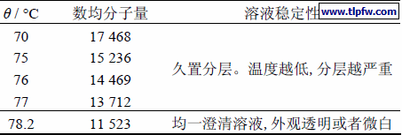 表4 反应温度对树脂数均分子量和溶液稳定性的影响