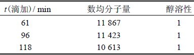 表5 单体滴加时间对树脂醇溶性和数均分子量的影响