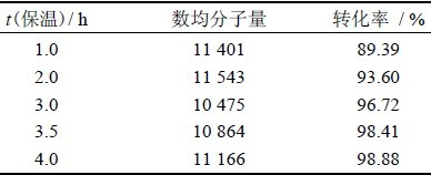 表7 保温时间对树脂数均分子量和单体转化率的影响
