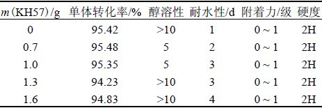 表8 硅烷偶联剂KH570 用量对树脂涂膜性能的影响