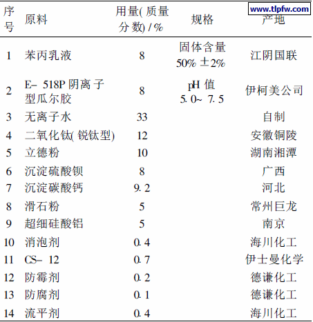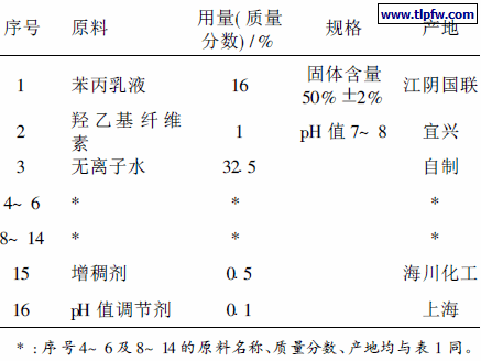 未添加瓜尔胶的苯丙乳胶漆配方见表2。