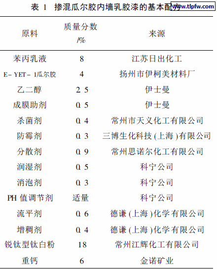 用瓜尔胶替代部分苯丙乳液制备内墙乳胶漆的基本配方见表1。