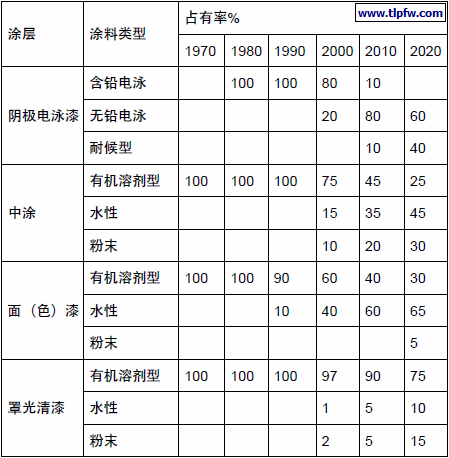 表4 世界汽车车身涂料的发展趋势
