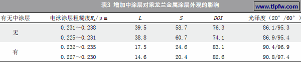 表2 电泳涂层粗糙度对乘龙兰金属漆漆膜外观的影响