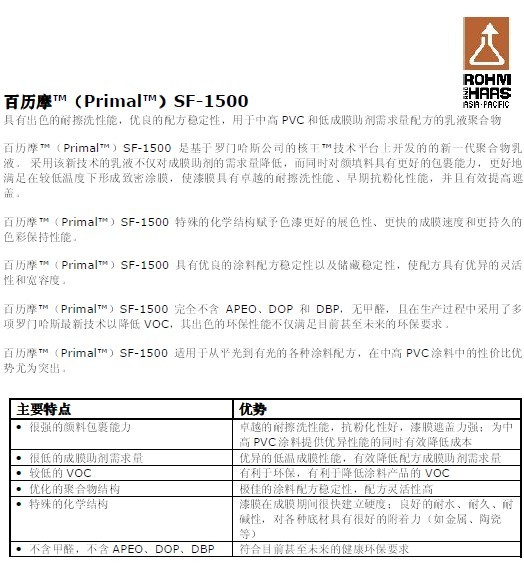 百历摩 (Primal )SF-1500 罗门哈斯