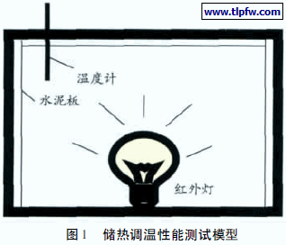 红外光谱分析: 样品用KBr 压片,采用日本岛津( SHIMADZU) 公司FTIR - 8300PCS 型红外光谱仪测定芯材和微胶囊的化学结构。扫描电子显微镜( SEM) 观察: 在SEM 样品台贴上一层双面胶,将干燥的微胶囊粉末粘在胶面上,用无水乙醇分散,待样品晾干后,真空喷金,采用日本JSM - 6701F 冷场发射型扫描电镜观察。差示扫描量热分析( DSC) : 采用德国Netzsch 公司的DSC204F 型差示扫描量热仪,在N2气氛下,以5 ℃ /min 的扫描速率,测量- 10 ~ 100 ℃范围的DSC 曲线,得到相变潜热及相变温度。储热调温性能测试: 制备涂有涂料的石棉水泥板各4 块,置于配有红外灯和温度计的自制秸秆/溴碳聚氨酯复合阻燃保温箱四周。测试时先用红外灯对各保温箱加热40 min,然后停止加热,用温度计测定不同时段2 个箱内的温度。测试模型如图1 所示。