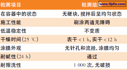 涂料其他性能测试: 参照GB/T 9755—2001《合成树脂外墙乳液涂料》的相关技术指标要求对所制得的相变储能调温内墙涂料进行性能检测。