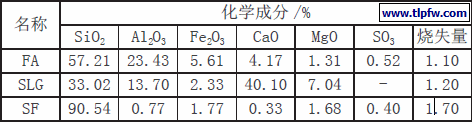三种矿物掺合料的化学成分见表1。